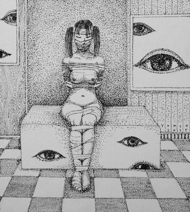 幻視妄想・伍(ご) 作 YONCO サイズ:12.8×11.2cm 顔料インクペン、水彩紙 2025年制作 本作品は2025年9月21日~30日にZaroffミニマルギャラリーで開催の Gallery Zaroff企画「幻視妄想」に展示された作品です。 ※ご購入に際し、作品のより詳細な情報が知りたい方は実店舗(画廊珈琲Zaroff)にお問い合わせください。 ※海外発送の際のご相談承ります。下記にお問い合わせください。 We accept consultations regarding overseas shipping. Please contact us below. ↓ http://www.house-of-zaroff.com/ja/contact.html ーーーー YONCOプロフィール(作家Xより) 画家/写真/オブジェ/音/工房黒い夜/2021年よりYONCOとして活動を始める。 2022年より画廊で発表。 2022年Zaroffにて絵画初個展「包帯譚」を開催。 包帯のモチーフ、独特の質感は元より、額装等、隅々に氏のこだわりが見られる作品を作成。