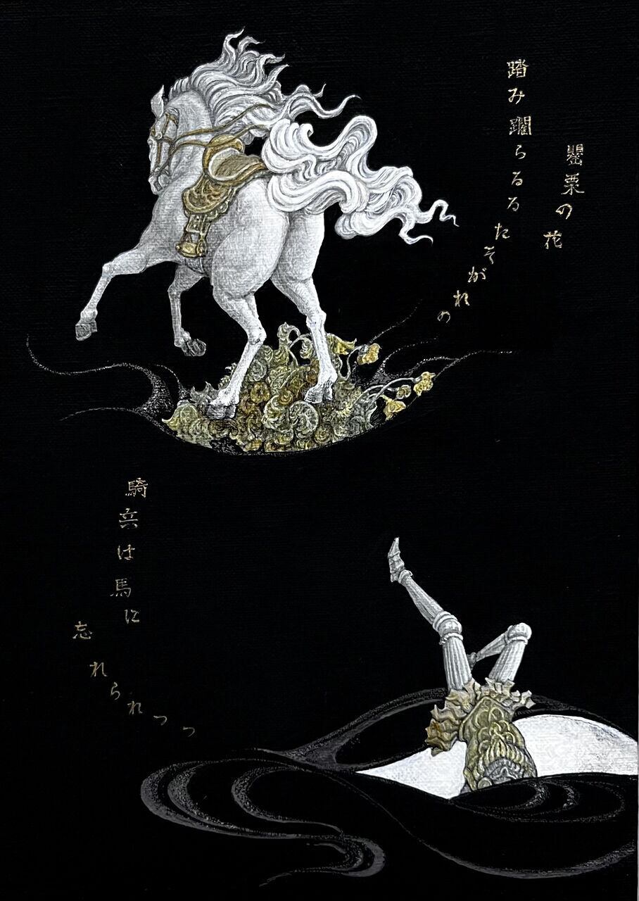 菅野まり子個展 collaborated with 川野芽生「忘却術 The Art for Oblivion」に展示された作品です。菅野さんの絵と歌人・小説家の川野芽生さんのテキストとのコラボレーションというコンセプトの展示でした。