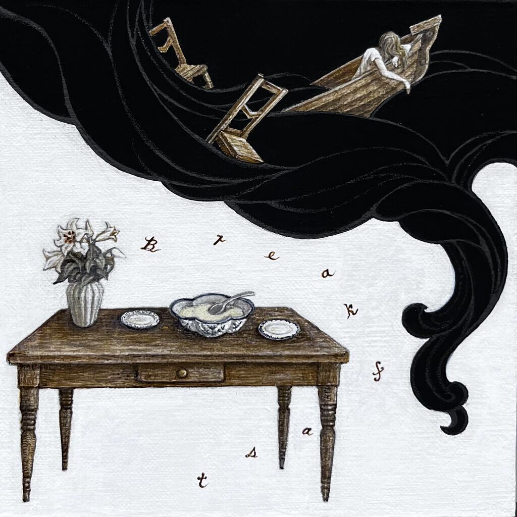 菅野まり子個展 collaborated with 川野芽生「忘却術 The Art for Oblivion」に展示された作品です。菅野さんの絵と歌人・小説家の川野芽生さんのテキストとのコラボレーションというコンセプトの展示でした。